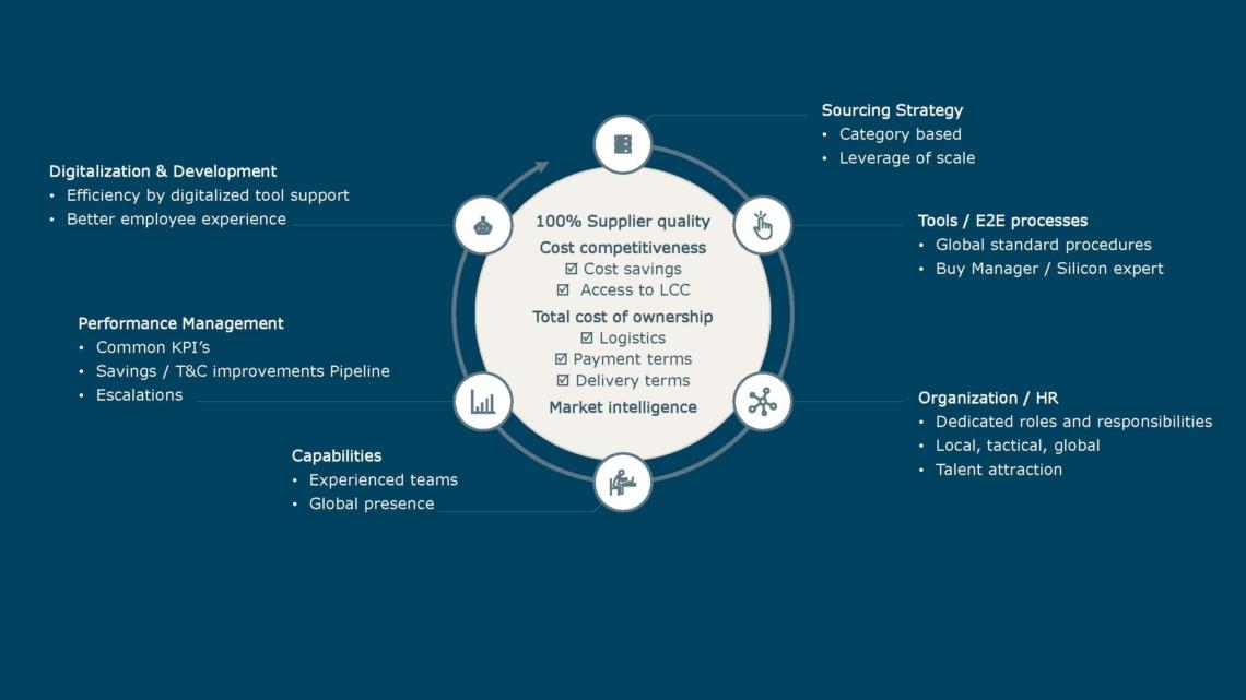 Our material procurement services cover all phases from the selection of suppliers for individual components to the management of daily material flows and the control of suppliers. We build a comprehensive global solution network that is cost-efficient and logistically works best for our customers. In addition to costs, we carefully choose suppliers who can assure quality, delivery reliability and flexibility.
