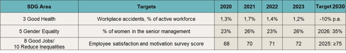 Our SDG focus areas on social side are Good Health, Gender Equality and Reduce Inequalities. These three areas are decided based on UN Sustainable Development Target Framework, UN Women Empowerment Initiative, and ISO 45001:2018. Our centric objectives for social sustainability are: